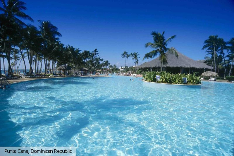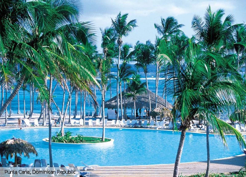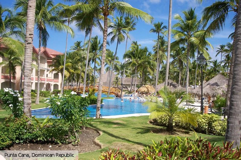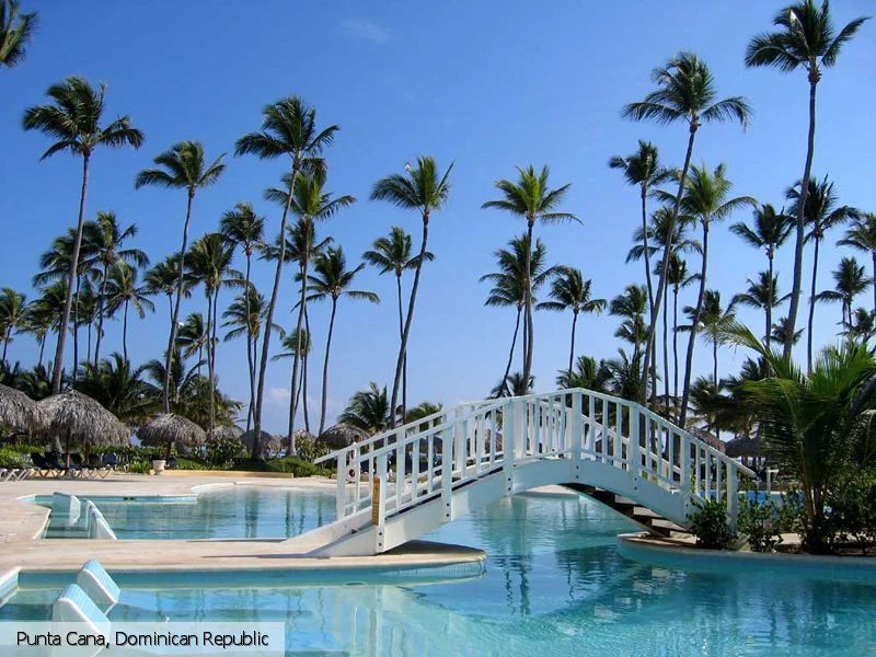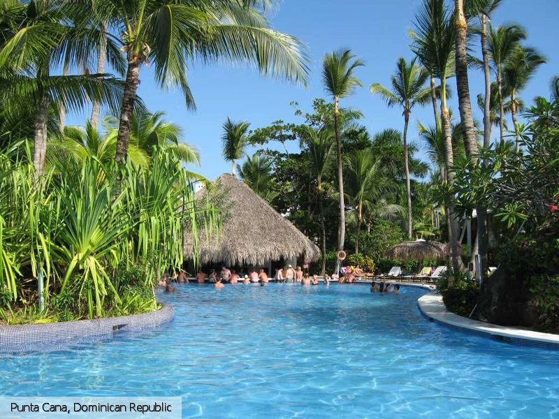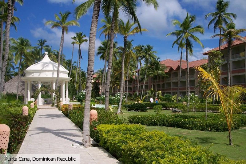 Название курорта - Пунта-Кана - произошло от вида пальм, в изобилии произрастающих здесь. Ветвями этих пальм покрыты крыши многих зданий, в том числе и международного аэропорта Пунта Кана. Пунта Кана располагается в восточной части острова Гаити. Там где сливаются воды Атлантического океана и Карибского моря. Курорт славится райскими пляжами белого песка, затененными тысячами кокосовых пальм: Баваро, Макао, Арена Горада, Кортесито, Кабеса де Торро и Пунта Кана. К услугам туристов - огромное количество элитных гостиничных комплексов.